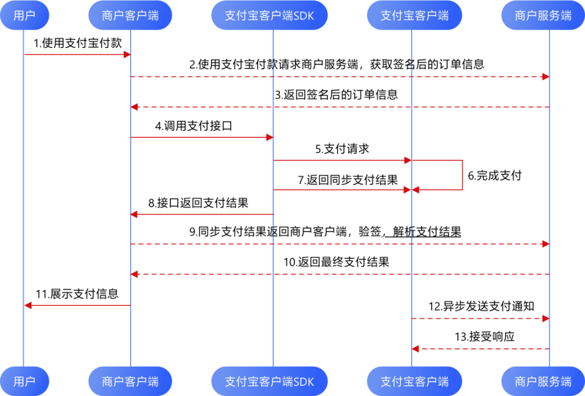密码学可以保护信息安全的四个基本要素:机密性、真实性、完整性和不可抵赖性。加密和数字签名是现代密码学的两大支柱,其中加密保证了消息传输的机密性;数字签名确保了消息传输的真实性、完整性和不可抵赖性。因此,加密和数字签名是当前互联网的安全基石,支撑着每年数以万亿美元的数字经济保持安全而有效的运行。其中,数字签名广泛地应用于电子商务、支付、电子邮件和网页浏览等同普通大众息息相关的生活中。以电子商务为例,每年的双十一都是中国电子商务行业的年度盛事,上亿级的用户通过淘宝、京东、拼多多等商城进行消费。只有保证每一笔交易中的订单信息、支付记录的真实性、完整性和不可抵赖性,用户和商家才能放心进行电子商务活动。如何确保源源不断产生的订单的安全性呢?支付宝的支付流程采用了基于公钥加密体系的数字签名算法来保证安全,如图1所示。使用支付宝进行交易时总共包括三个参与方:用户、商户和支付宝,其中商户和支付宝各自生成一对公私钥,商户端公私钥用于对支付订单进行签名、验签,支付宝公私钥用于对支付信息进行签名和验签。随着量子计算时代的来临,以公钥密码为基础的加密和数字签名在量子计算攻击下是不安全的,存在着巨大的安全隐患。