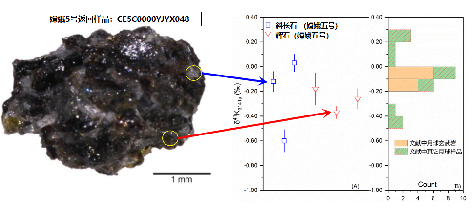 图 3. 嫦娥五号返回月球样品显微尺度的K同位素不均一性的首次揭示