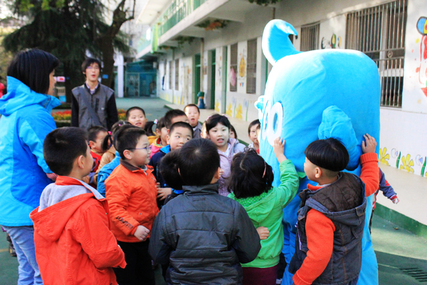 海宝无疑成为了一个焦点,被小朋友们簇拥着,也有使用“武力”的小朋友!辛苦唐阳同学~