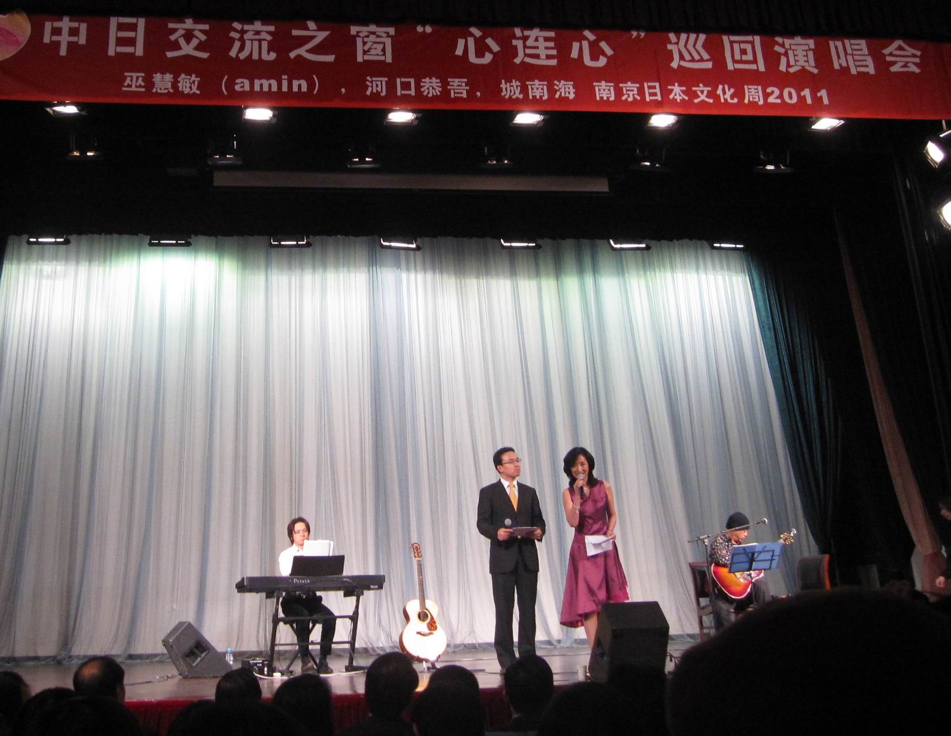 2011年3月12日,时值凯发k8官网日本文化周的最后一天,晚上6点中日交流之窗“心连心”演唱会在凯发礼堂顺利举行。曾经参加过日本红白歌战的旅日华人女歌手巫慧敏,日本著名创作型男歌手河口恭吾,日本人气“岛歌”女歌手城南海纷纷登台亮相,倾情献唱。