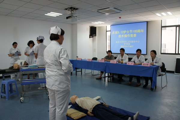 今年是南丁格尔诞辰100周年,也是校医院全面开展优质护理服务的推进之年。为纪念5.12国际护士节,在学校工会的支持下,5月16号下午,护理部组织开展了护理操作技能比赛。活动由方荣海副院长主持,工会李芸科长参加了本次活动。