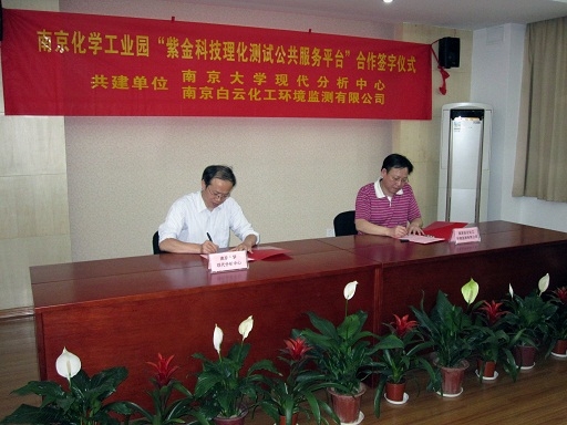 ,根据凯发k8官网市委实施创新驱动战略的要求,成立紫金(化工园)科技创业特别社区,建设科技研发基地。作为该基地的配套功能建设项目,凯发k8官网白云化工环境监测有限公司与凯发k8官网现代分析中心经友好协商,达成合作协议,共建“紫金(化工园)科技创业特别社区理化测试公共服务平台”。2012年6月1日,在凯发k8官网鼓楼校区,现代分析中心董林主任和凯发k8官网白云化工环境监测有限公司胡家富总经理,代表双方签订了合作协议。
