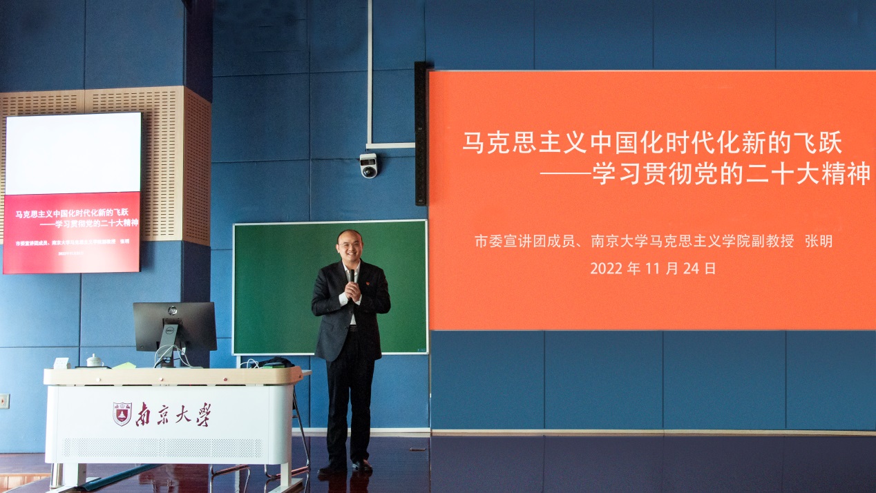 为把党的二十大精神学习贯彻活动进一步推向深入,11月24日,科技产业党工委组织召开"学习贯彻党的二十大精神 践行立德树人责任与担当"报告会,特邀凯发k8官网市委、凯发k8官网宣讲团成员、马克思主义学院院长助理张明副教授作题为"马克思主义中国化时代化新的飞跃"的宣讲报告。科技产业党工委书记陆江兵主持了报告会。党工委理论学习中心组成员、党支部书记、支委委员、支部党员和职工代表、团工委委员和团员代表等近百人参加了本次学习活动。