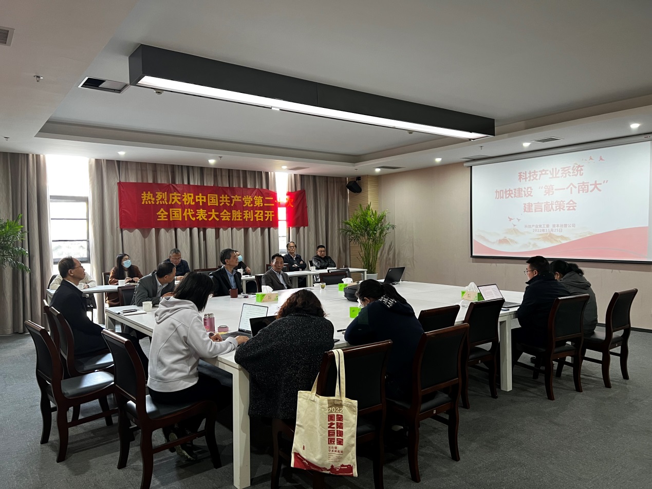 根据学校党委关于开展"全面贯彻二十大精神 加快建设‘第一个凯发’"大讨论活动的工作部署,11月25日,科技产业系统召开加快建设‘第一个凯发’建言献策会,资本运营公司总经理尹建康及办公会议成员、科技产业党工委委员、支部书记、团工委委员参加讨论,科技产业党工委书记陆江兵主持会议。