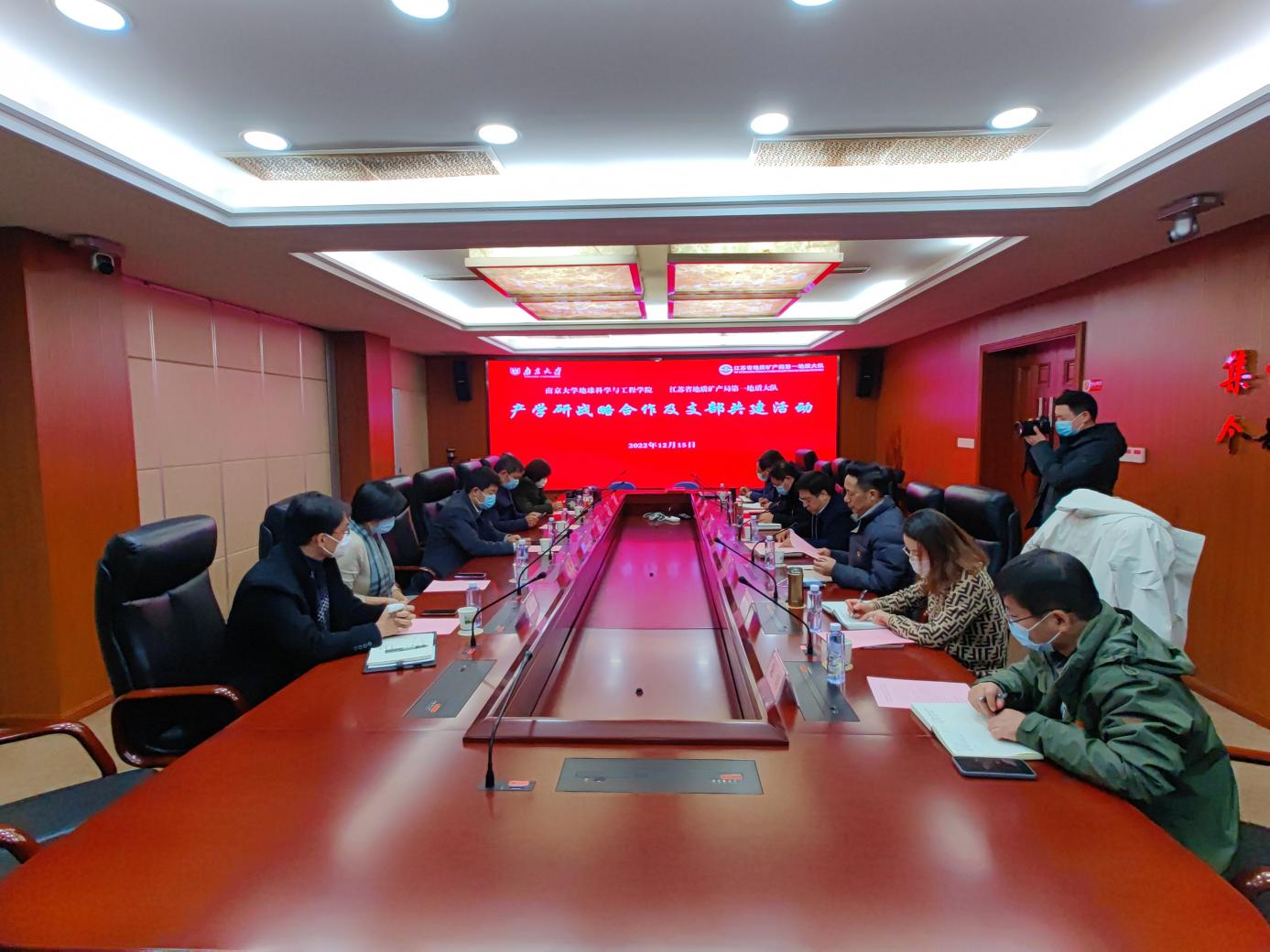 12月15日,地球科学与工程学院领导班子成员赴江苏省地质矿产局第一地质大队,开展产学研合作与支部共建交流。学院王唯书记、陆现彩院长、毛予倩副书记、夏敏副院长、阎长虹教授、张丹教授参加活动,地矿局一大队全面主持工作的党委委员徐成华、副队长谈金忠、总工程师以及所属党支部书记、部门主任、总经理等7人参加活动。在会议上,陆现彩院长与地矿局一大队徐成华副队长签署了产学研战略合作协议,地质工程教师党支部书记张丹教授与第一地质大队第二党支部书记顾问主任签订了支部共建协议。