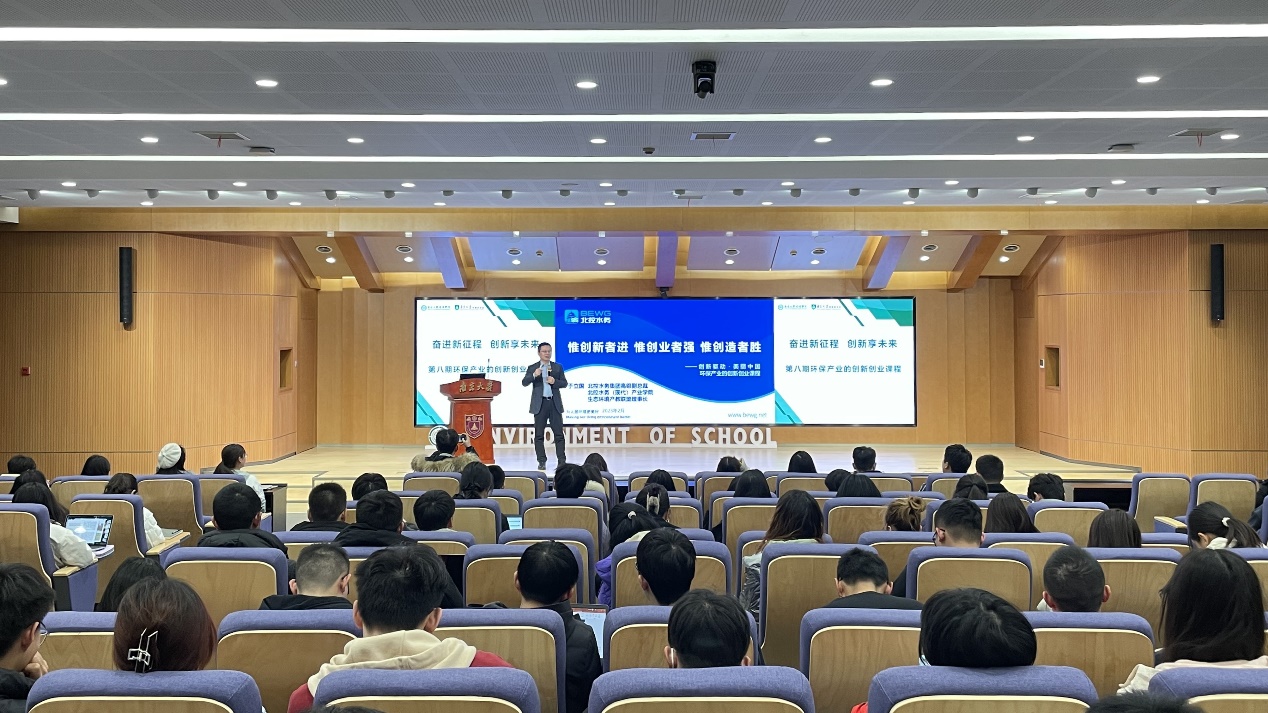 于立国介绍了北控水务集团的概况,并对我国环境产业的发展趋势、未来环境人才能力特质以及创新创业的特点进行了讲解。他表示,我国环境产业正处在"水环境综合治理"的新阶段,为助力实现我国"双碳"目标,环境产业要牢牢把握新趋势、立足新起点、拥抱新赛道,急需专业过硬、素质优良的复合型环保人的加入。他希望,新一代环境人能够在行业内保持耐心、热心、责任心,加快推进环境产业高质量发展,为建成青山常在、绿水长流、空气常新的美丽中国而努力。