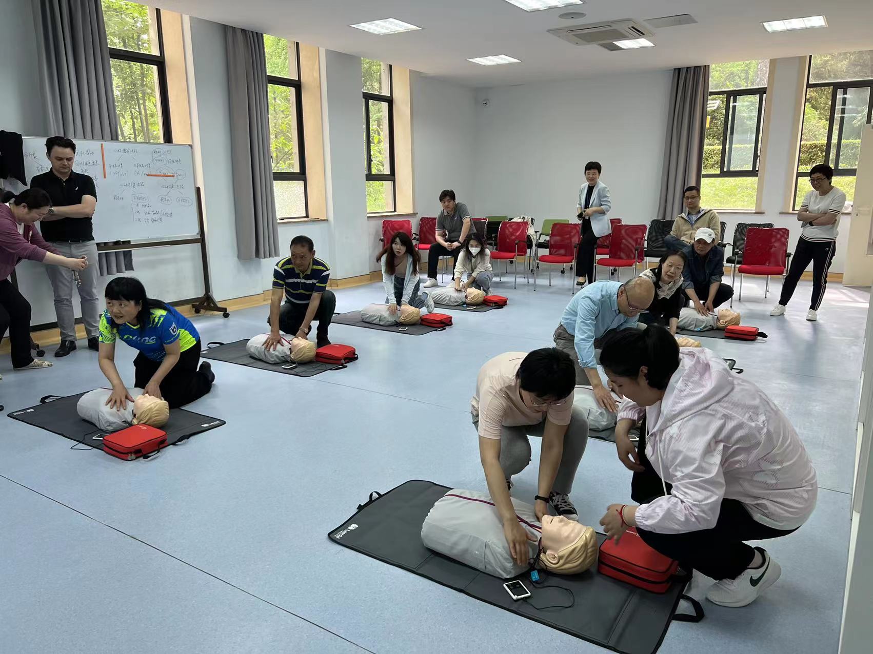在随后的三天里,中心中外师生分期分批前往医学院进行学习和训练。本次为期四天的培训,有效地提高了中心师生在突发现场的救治处置能力,增强了中心师生现场急救意识,提升了中心师生紧急状态下的基本急救技能,这为中心师生今后遇到突发状况实施现场急救奠定了良好基础。