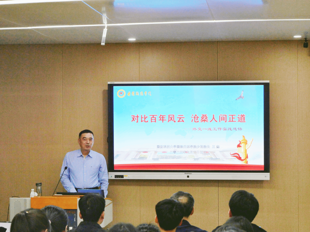 王鑫院长基于在亚非欧等相关地区国家从事一线外交工作的亲身经历,深刻生动地阐述了当今的世界之变、时代之变、历史之变、格局之变、关系之变、秩序之变。王鑫院长通过将我国的发展道路、治理模式与相关国家的历史对比,提出了六点重要启示。他指出,一、坚强的领导核心是有效治国理政的根本保证;二、自主的发展道路是国家繁荣富强的正确方向;三、社会治理现代化是国家持久发展的制度保障;四、忠勇的军事力量是国家长治久安的坚强柱石;五、独立的外交政策是国家生存发展的重要条件;六、强烈的斗争精神是中国长盛不衰的血脉基因。最后,王鑫院长强调,我们必须做好应对外部风险挑战的充分准备,把可能面临的“大变局”“大乱局”变成“大棋局”“大活局”。