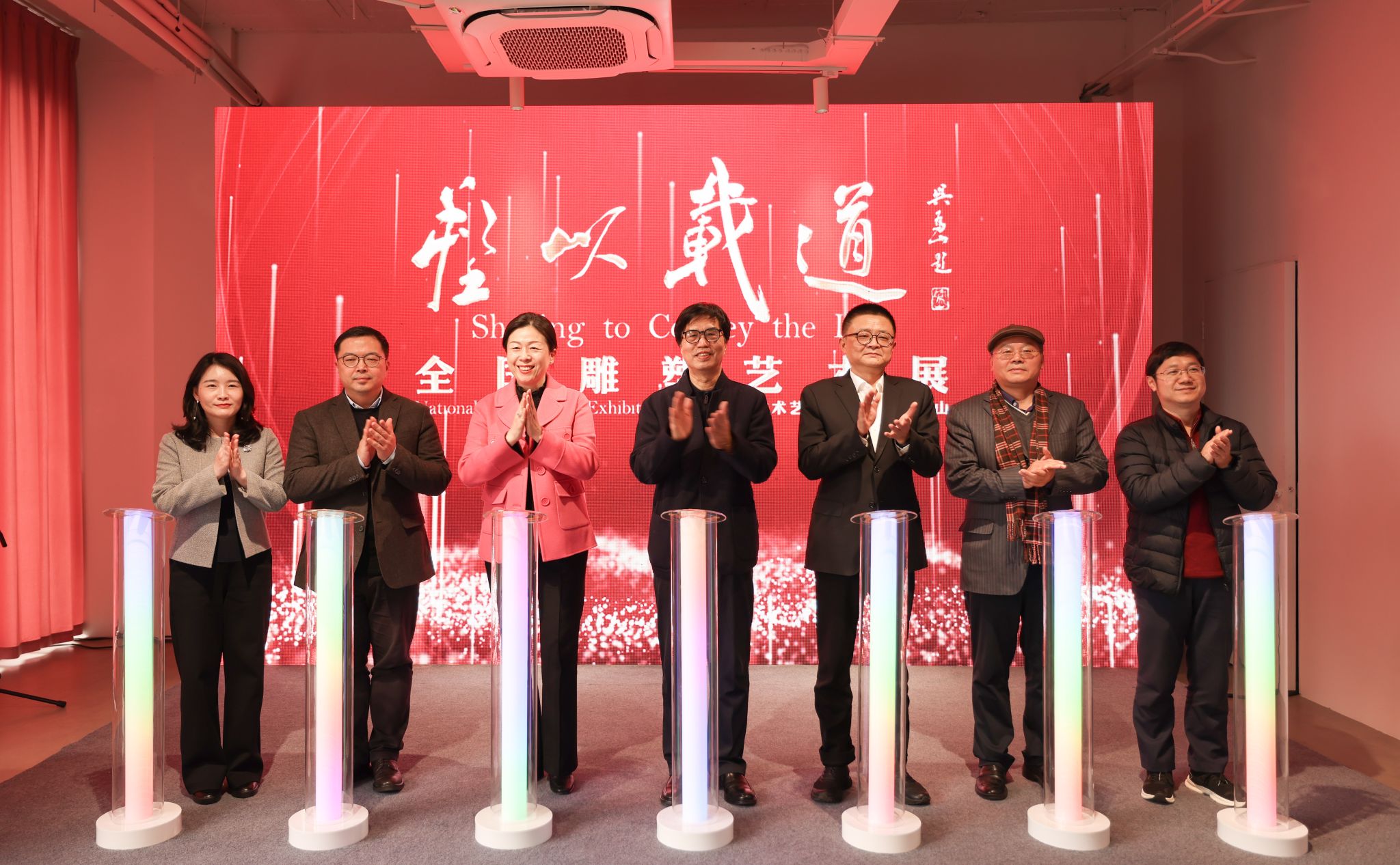 章剑华主席、何成洲院长、秦咏薪市长、顾文龙秘书长、蒋蕴洁局长、尚荣主席、顾真真馆长共同为展览揭幕。