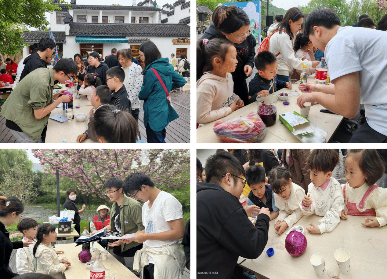 4月13日下午,为增强学生反哺社会意识,服务乡村文化振兴,激活乡村文旅活动,化院蒋雯若爱心社组织志愿者同学来到栖霞区桦墅村,助力“2024桦墅‘桃喜’国风节之桦墅‘桃喜’邻里节活动”,他们开展化学科普、倾情歌唱,展现睦邻友好、积极向上的精神风貌。