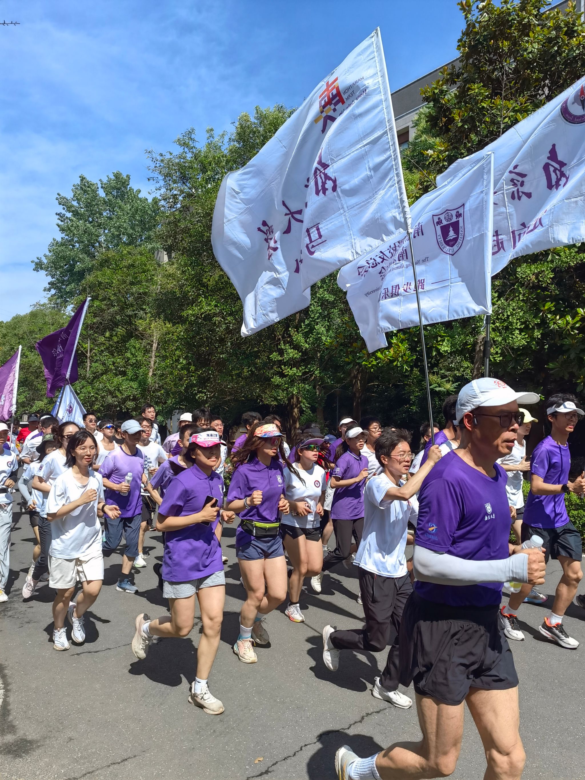 5月19日上午6时,八十余名凯发k8官网校友、师生在嘹亮的口号声中从鼓楼校区出发,穿过中央大学旧址,翻过紫金山,跑步25.20公里,抵达仙林校区。稍作休整后,与其他九十余名师生共同在仙林校区内环跑5.20公里。校保卫处全力协助校园内道路管控和秩序维护,确保了线下跑活动的顺利完成。线下跑活动进行了全程直播。