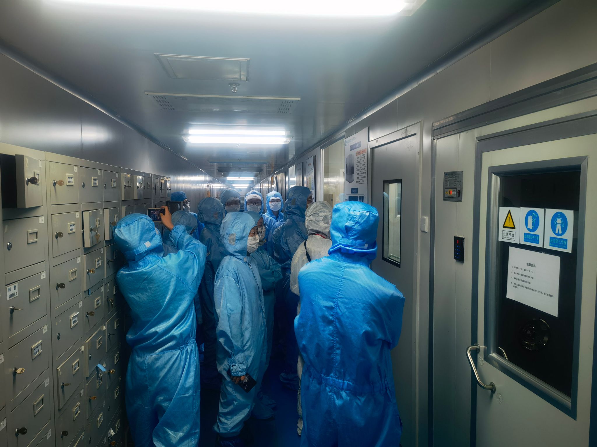 随后,同学们参观了重点实验室。实验室涵盖了半导体物理、材料科学、器件制造等多个研究领域,有专注于半导体材料的微纳结构加工与表征的实验中心,包括纳米制造实验室、薄膜沉积实验室、电子束光刻实验室等。拥有自旋电子学、低维半导体和量子输运等方向的物理实验室,拥有高精度、高灵敏度的仪器,如扫描电子显微镜、原子力显微镜、以及超快激光光谱仪等。科研人员详细介绍了设备的工作原理和在实际科研中的应用。同学们感受科研环境的同时,与一线科研工作者提问交流,将讲座听取的前沿理论具象化。