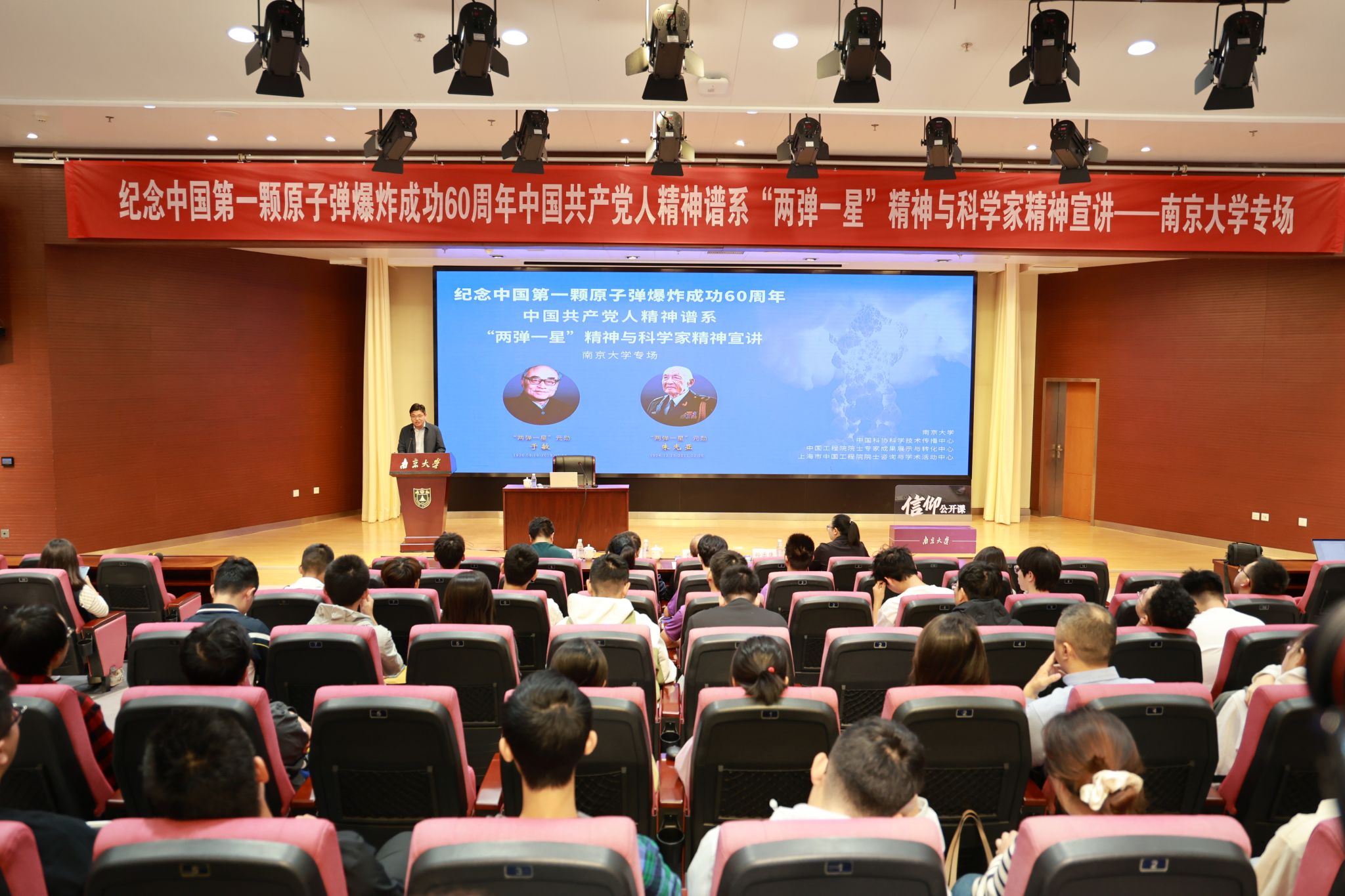 为纪念中国第一颗原子弹爆炸成功60周年,10月11日,中国共产党人精神谱系“两弹一星”精神与科学家精神宣讲会走进凯发k8官网校园。“两弹一星”元勋朱光亚同志之子朱明远研究员、“两弹一星”元勋于敏同志之子于辛高级工程师莅临现场,讲述父辈为国铸核盾的感人故事,激励凯发青年师生以实际行动投身强国建设、民族复兴伟业。