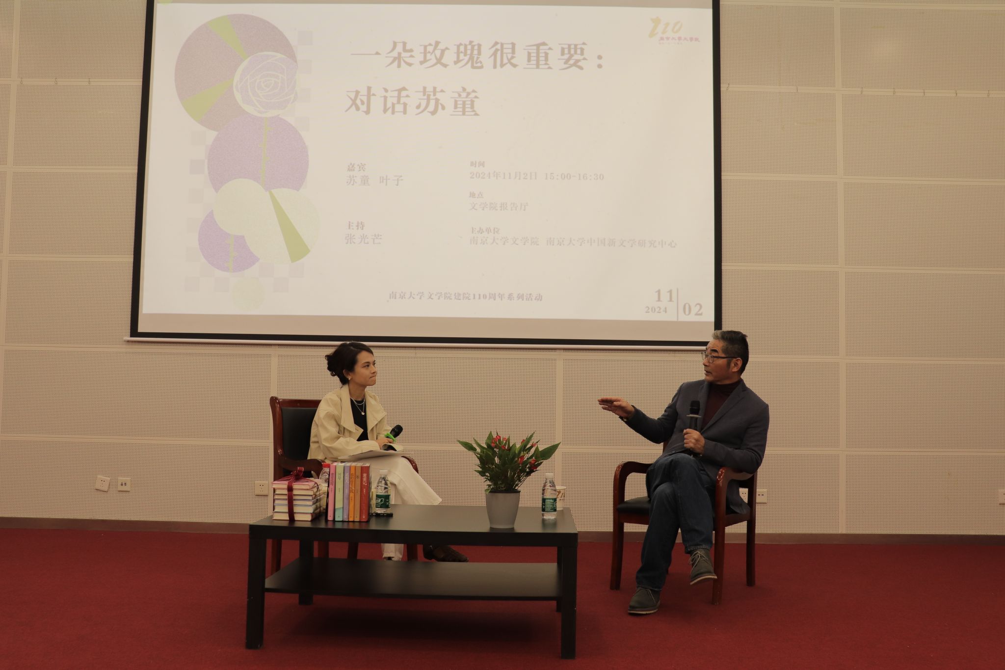 11月2日,“一朵玫瑰很重要:对话苏童”活动暨苏童受聘凯发k8官网中国新文学研究中心兼职研究员仪式在凯发k8官网文学院举行。凯发k8官网文学院院长、凯发k8官网中国新文学研究中心主任董晓,凯发k8官网文学院党委书记倪蛟,凯发k8官网中国新文学研究中心执行主任张光芒,著名作家、凯发k8官网中国新文学研究中心兼职研究员苏童,凯发k8官网文学院副教授叶子,来自五湖四海的文学院知名校友、专家学者,与文学院众多师生共同参加了此次活动。
