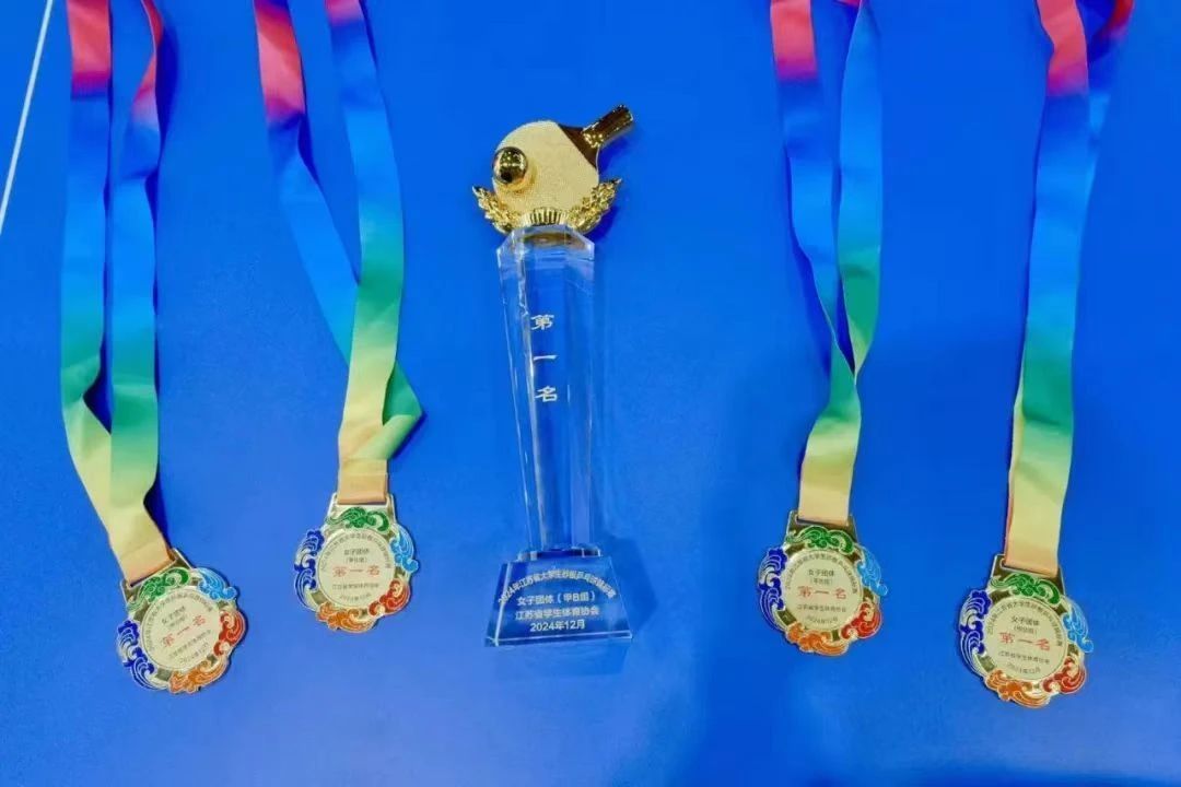 女子团体比赛,四位队员赵雪怡、蔡晨雯、张语桐、乔文轩默契配合,稳定发挥,在小组赛中全胜晋级,在淘汰赛环节中顶住压力,连胜对手,展现了顽强拼搏的精神和高度默契的配合,最终成功摘得女子团体比赛桂冠!