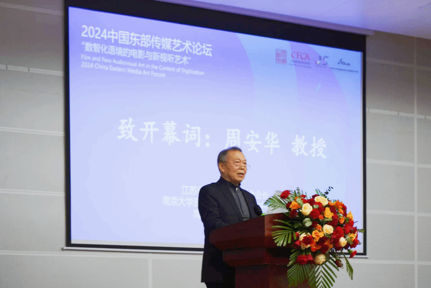 江苏省传媒艺术研究会会长周安华致开幕词时指出,传媒与传媒艺术的历史性改变已经到来,希望与会专家学者要牢牢把握后科技时代人工智能崛起的战略机遇,准确认识世界影视和媒介艺术变化的方向,以开放的心态深入思考传媒在当今世代的角色意义,并努力深化和开拓影视传媒艺术的学术研究,以此站在历史前沿,不断获取新的艺术经验,形成富有价值的中国式影视传媒知识体系和民族独有的艺术哲学建树。