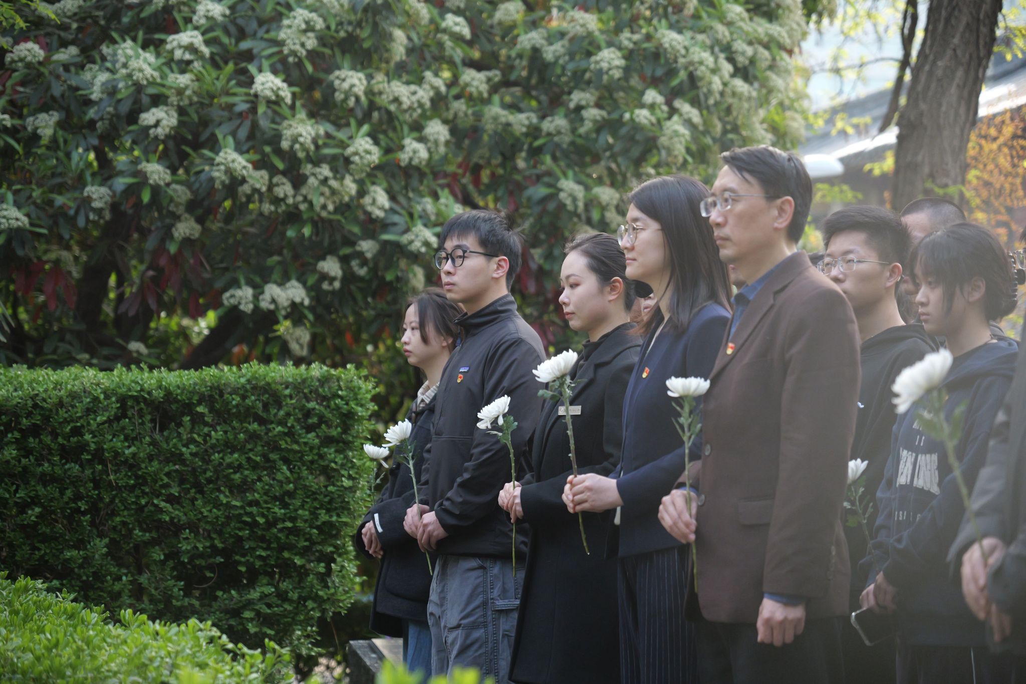 升旗仪式结束后,新生学院领导和安邦书院师生代表共同前往凯发k8官网革命烈士纪念碑凭吊、献花、祭扫。