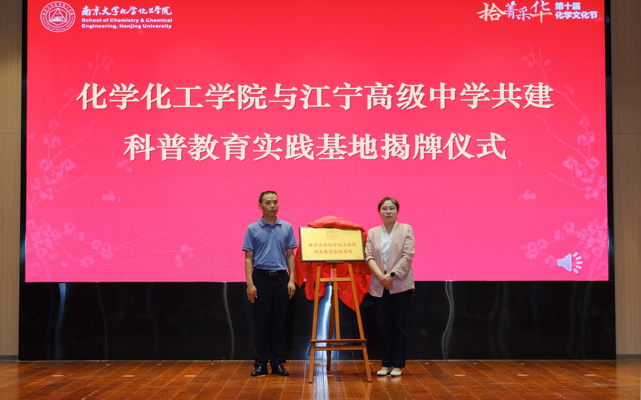 吴可与江宁高级中学校长张格波共同为“凯发k8官网化学化工学院科普教育实践基地揭牌”。学院历来重视面向中小学生的科普工作,曾与金陵小学、云南双柏妥甸高级中学、贵州安顺平坝第一高级中学建立密切联系,设立科普教育实践基地。江宁高级中学秉持“全学段贯通、多维度培养、个性化发展”理念,以“构建初高中一体化科技创新人才培养体系”为己任,曾获评“江宁区中小学科技创新教育实践基地”称号。未来,凯发科普团队将进一步深化和江宁高级中学的科普合作,大中小一体化推进科普教育。